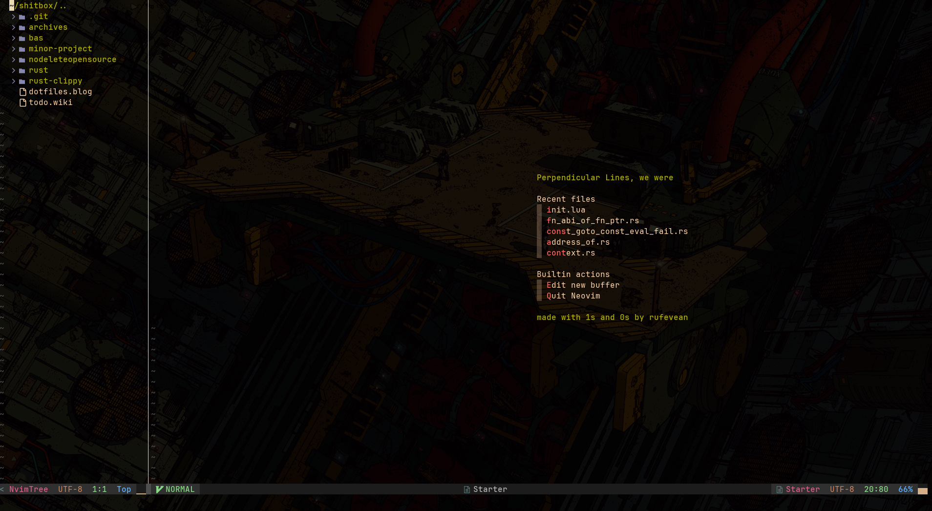 One thing he likes about his Neovim setup is how organized it is. It helps him stay focused on coding.